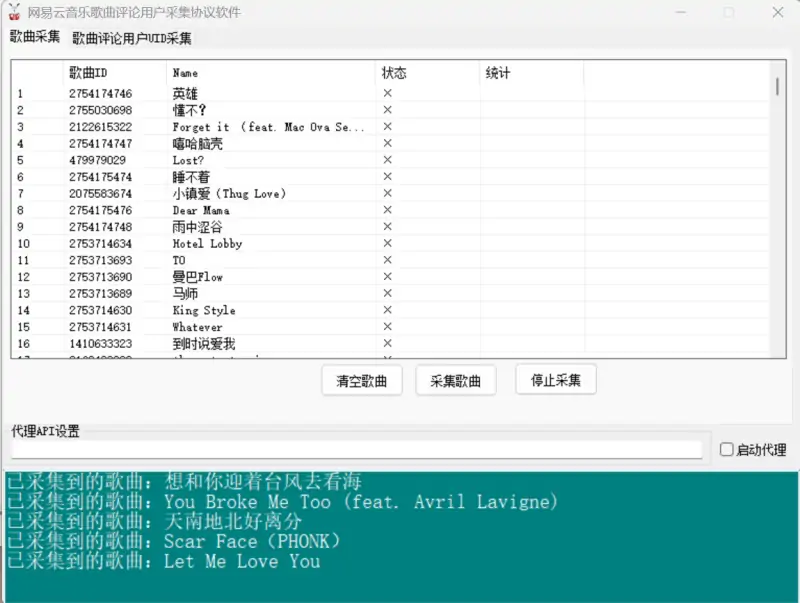 智能运行: **点击“开始”**按钮后,软件即可自动、智能化地完成后续的歌曲信息和评论用户 UID 采集工作,无需持续人工干预,实现自动化数据获取。