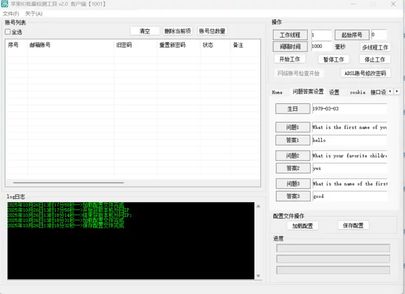 此工具是一个综合性的平台,旨在对大量 Apple ID 进行高效的状态筛选、登录验证、安全配置管理以及批量维护。