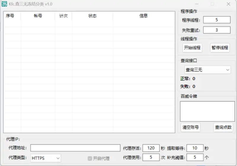 这款工具是一款专为QQ账号状态批量检测而设计的高效软件,其核心价值在于结合了代理IP技术和多线程处理,实现了对账号冻结状态和**安全属性(三无)**的快速、稳定识别与分类。